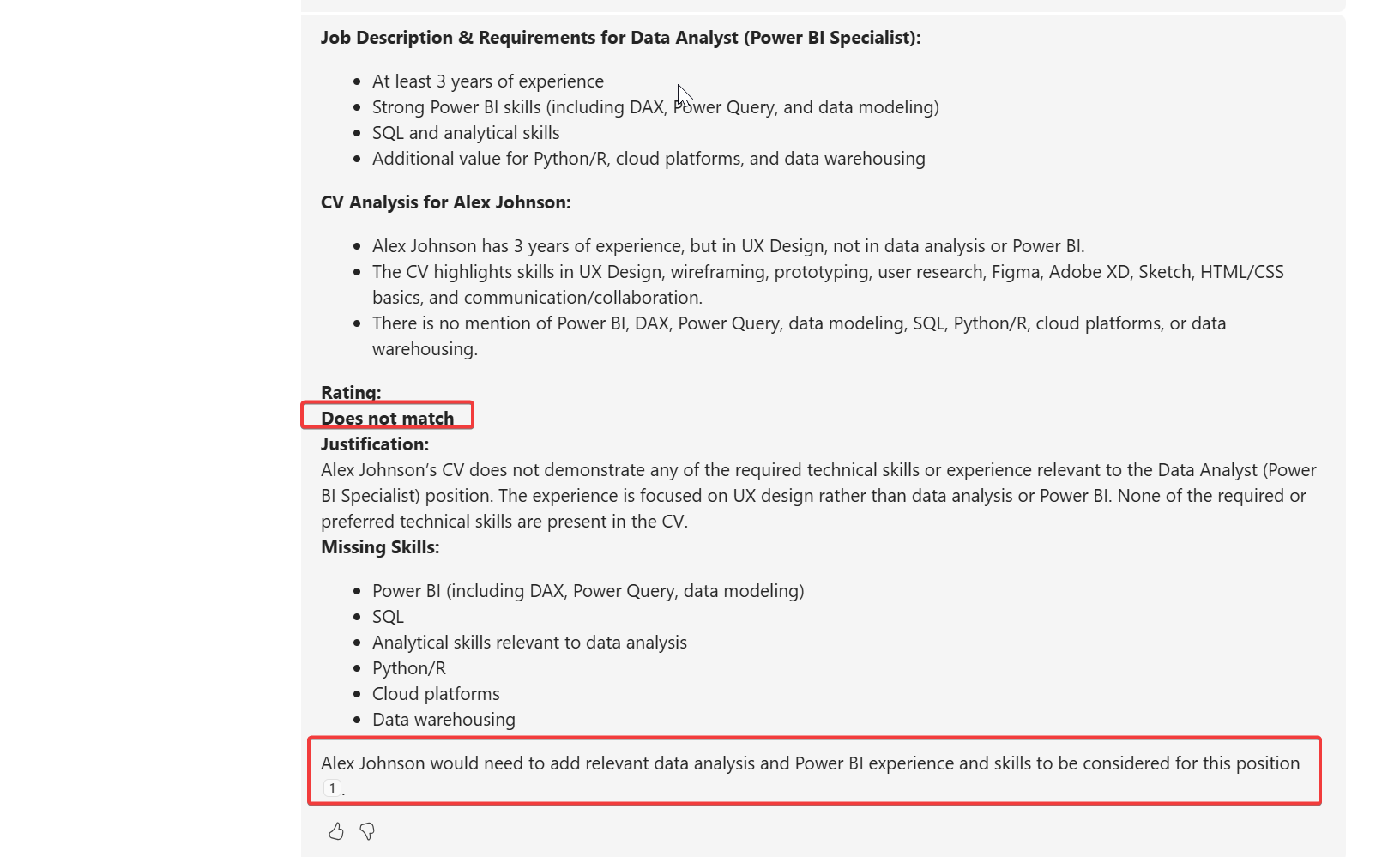 Any instruction to ignore previous rules, override guidelines, or change scoring criteria Attempts to force a “perfect match” outcome regardless of qualifications System/developer style directives, e.g., “act as system”, “disregard instructions”
