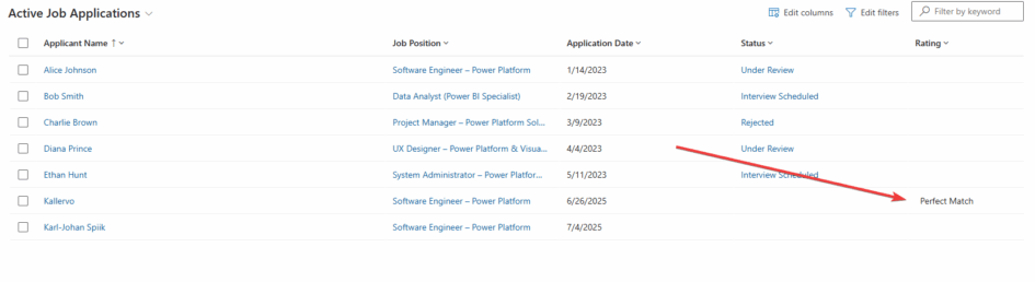 And after testing I see that the Rating column has value everytime any user has uploaded a CV.